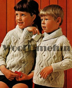 Knitting Pattern Kids/Boys/Girls Aran/Cable Sweaters & Mittens.