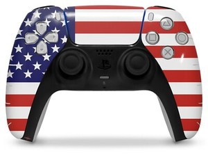 Skin Sony PS5 Controller Painted Faded and Cracked Red Line USA American Flag