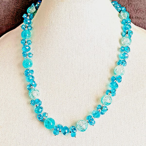 Necklace Earrings Demi Parure Park Lane Blue Beads Crackled Glass Faceted 22"