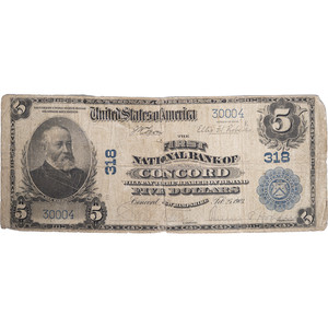 1902 $5 The First National Bank of Condord NH National Currency Note Low Charter
