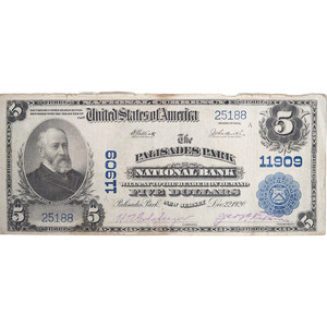 1902 The Palisades National Bank NJ Scarce Note Nice VF