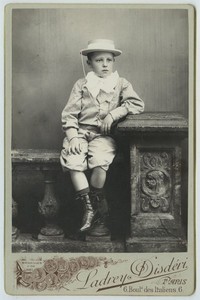 Cabinet circa 1900 Ladrey Disdéri. Garçon élégant au canotier. Mode.