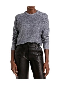 AQUA Cashmere Shell Stitch Sleeve Cashmere Sweater-Heather Gray L