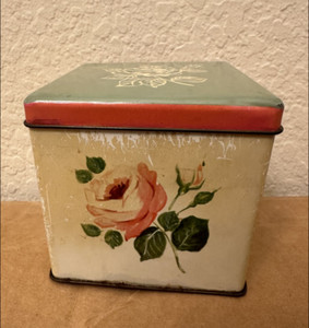 Vintage Floral Tin Box with Hand-Painted Rose Design, Shabby Chic Storage Contai