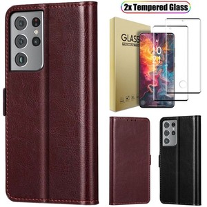 For Samsung Galaxy S21 Ultra 5G Case Flip Leather Wallet Cover Screen Protector