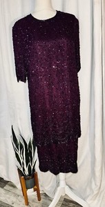 Brilliante By J.A. Vintage Beaded Sequin Dress Size 1X Plum Formal 100% Silk