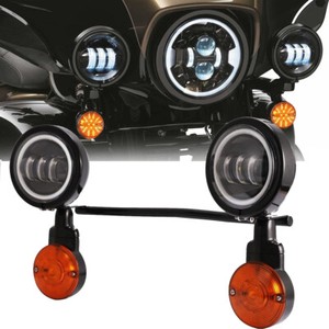 LED Headlight Passing Turn Signal Light Bracket Bar For Harley Road King Classic