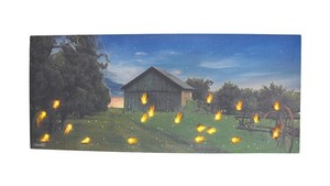 Scratch & Dent Country Farm at Dusk Flickering LED Lightning Bugs Wall Art
